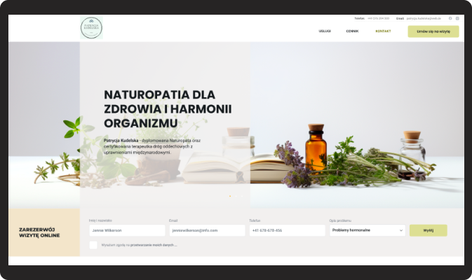 Wdrożenie narzędzi umożliwiających łatwe umawianie wizyt online, dostęp do zasobów edukacyjnych, a także możliwość kontaktu z naturopatą poprzez formularze kontaktowe.